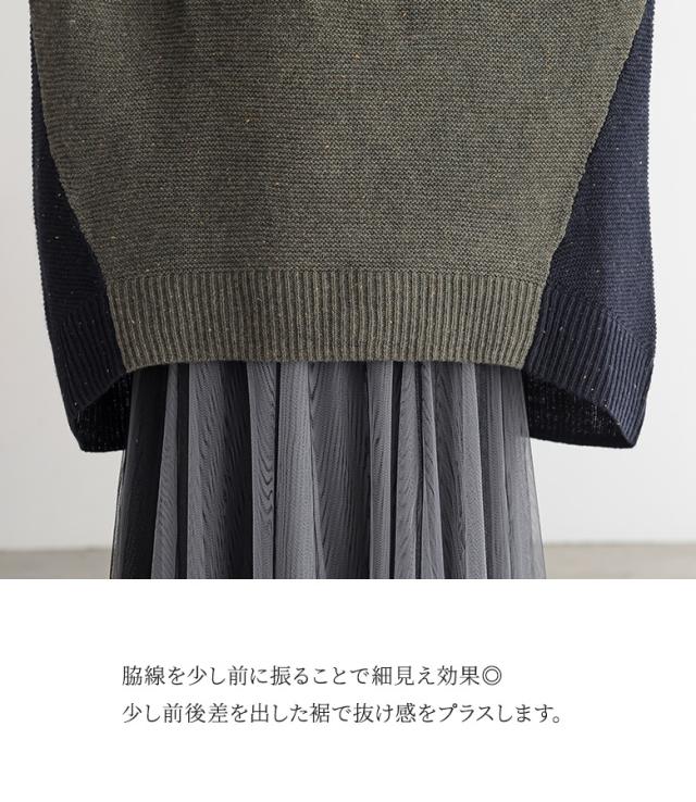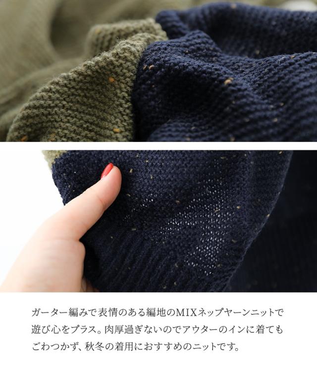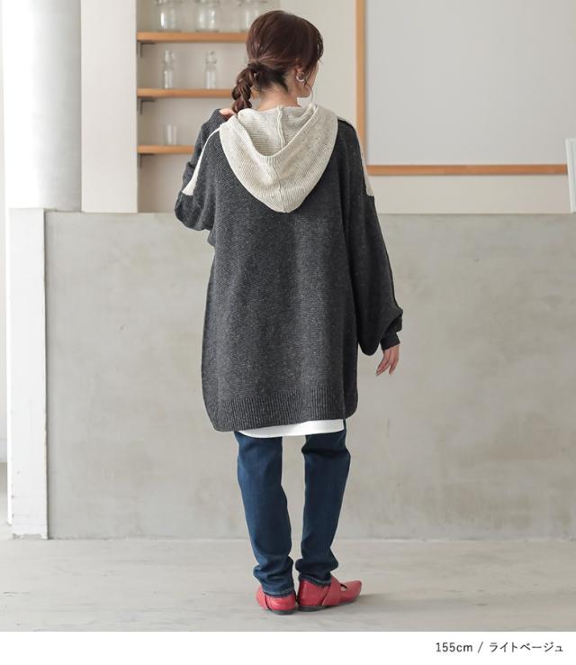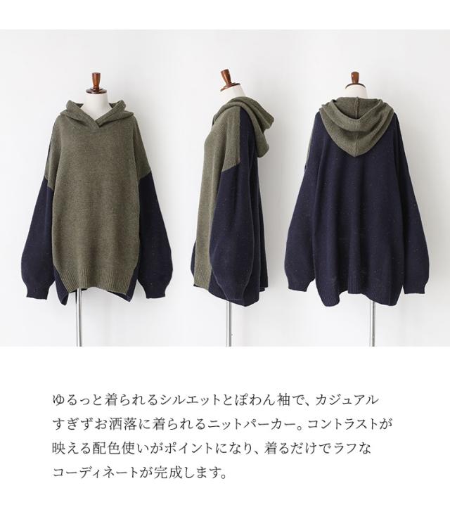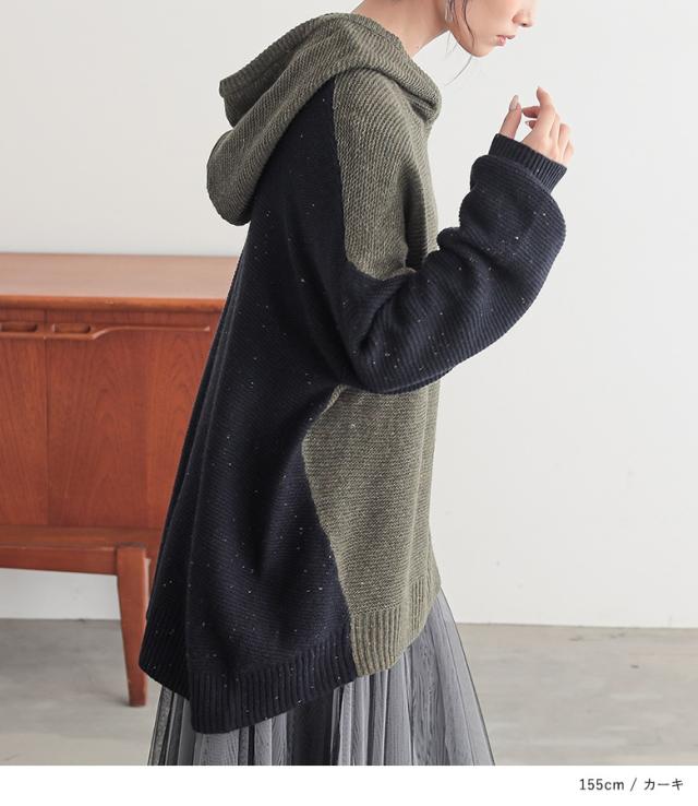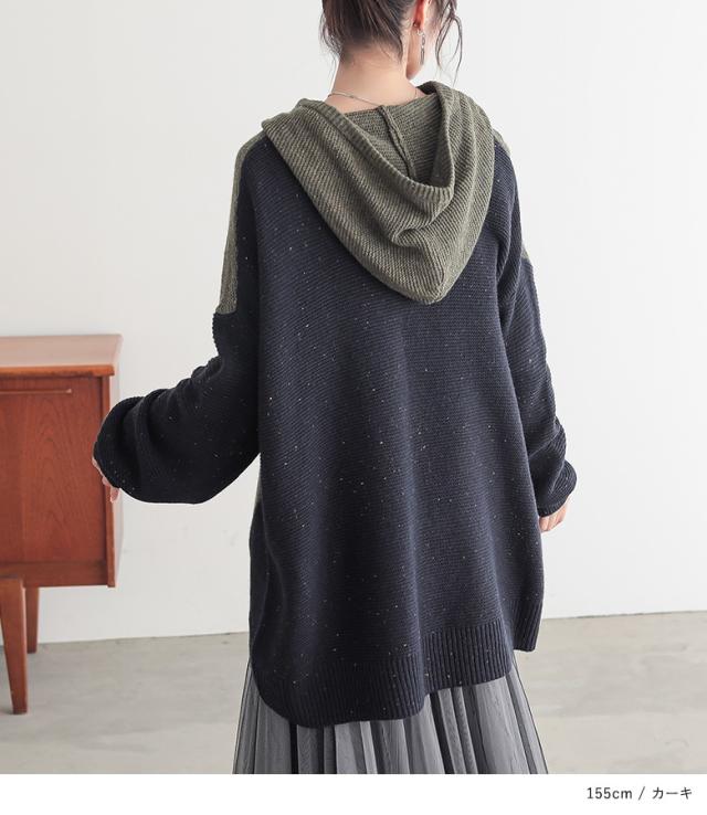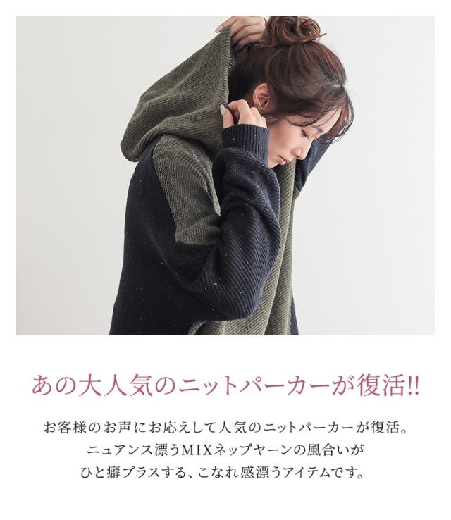 『ミックスネップニットパーカー』 【メール便不可】【20】[ニットパーカー フード付き フーディー レディース 秋冬 トップス プルオーバー 長袖 ボリューム袖 バイカラー 配色 MIXヤーン tgn0263]