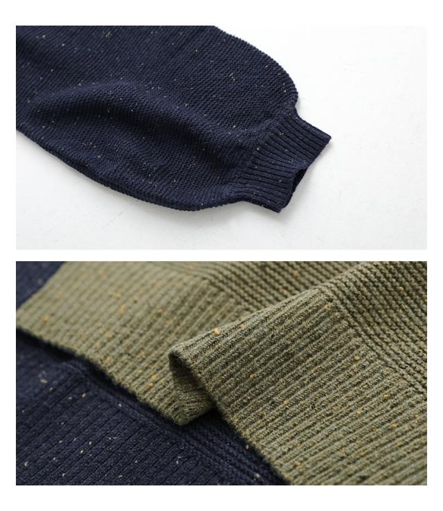 『ニュアンス溢れる印象的な私に。』 身頃と袖のコントラストが映える配色使いで視線を奪う、こなれ感たっぷりのニットパーカー♪ 独特な色合いが特徴のミックスネップヤーンを使用した、ニュアンス漂う編地。肉厚すぎないニット生地だからアウターと合わせてもごわつかず、お出掛けにも着ていきやすいのが嬉しいポイントです。 ぽわんとした袖の形が、カジュアルさと女性らしさの程よいバランスを生み出す。配色切り替えのサイドを少し前に振ることで、ゆるっと着られるシルエットにメリハリが生まれました。 今、好きな物、興味あることを自由な発想で表現できる≪ n'OrLABEL ≫。 「実用性と機能性、そして遊び感覚」、多面性を楽しめるピュアでモードなデザインライン。 着るだけでラフでお洒落な装いに≪n'OrLABEL≫ミックスネップニットパーカーです。 |