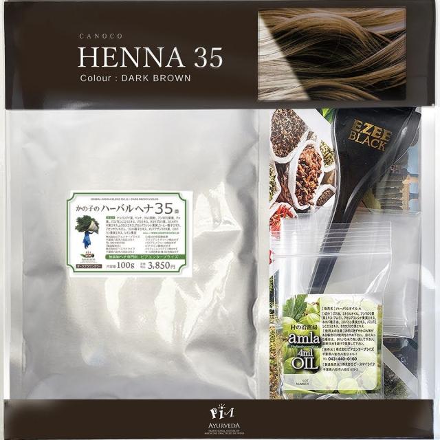 かの子のハーバル ヘナ【35番|ダークブラウン (こげ茶色)】100g 植物成分100%ヘナカラー 白髪染め オーガニック農法 ボタニカル トリートメント効果 無添加 無農薬 天然成分 自然派 ノンケミカル ノンジアミン 抜け毛 脱毛 切毛 保湿 紫外線対策