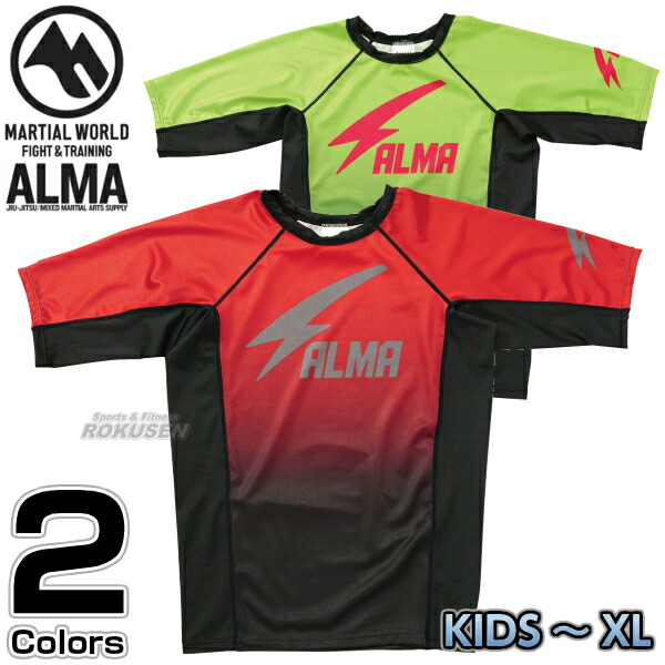 ALMA・アルマ ラッシュガード サンダーストーム KIDS/XS/S/M/L/XL レッド×ブラック/グリーン×ブラック ALR7 アンダーウェア MMA 総合格闘技 ブラジリアン柔術