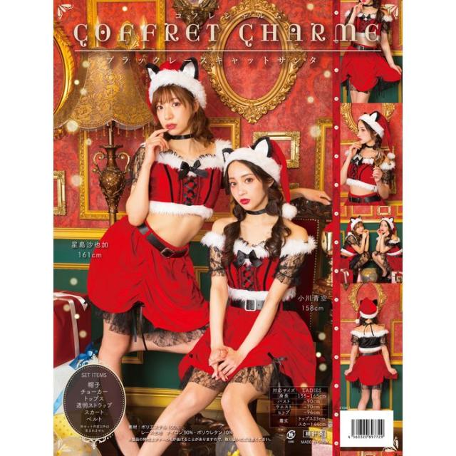 XM コフレシャルム ブラックレースキャットサンタ 帽子 チョーカー トップス スカート ベルト 仮装 コスプレ 衣装 忘年会 クリスマス ハロウィン クリアストーン 4560320897729