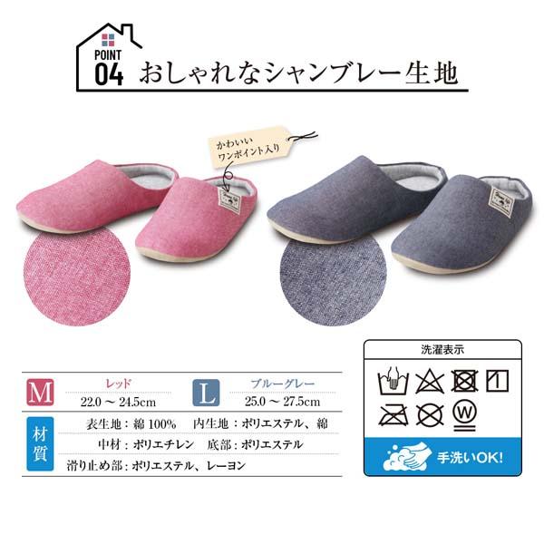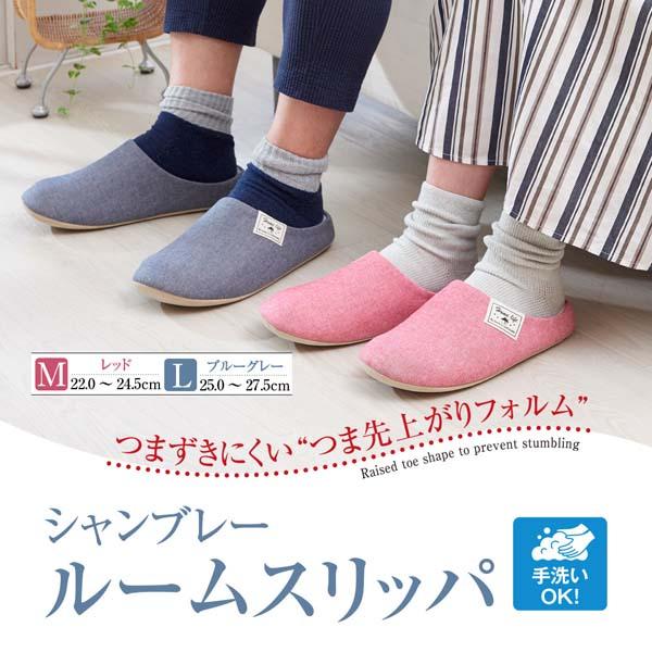 シャンブレールームスリッパ 滑り止め付き 1009453 室内履き ブルー L