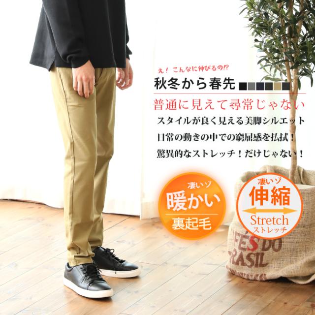 暖パンツ チノパン メンズ ストレッチスキニー 暖かい 冬新作 裏起毛 パンツ メンズ 感激ストレッチ ハイテンションストレッチ スマポケ スキニーパンツ メンズ