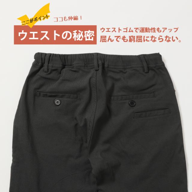 ■ウェスト部分もバックシャーリングゴムで伸縮しフリーで快適に着用。