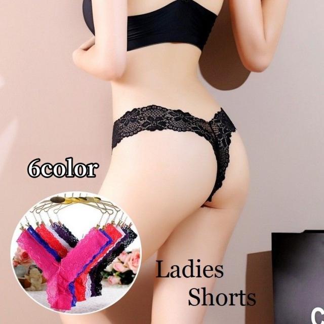 Tバックショーツ 単品 レディース パンティ 女性下着 パンツ V字デザイン 総レース リボン シースルー 透け感 セクシー タ