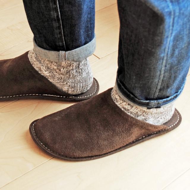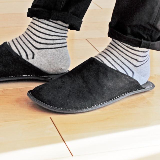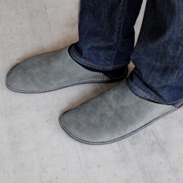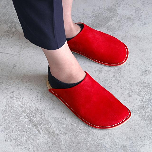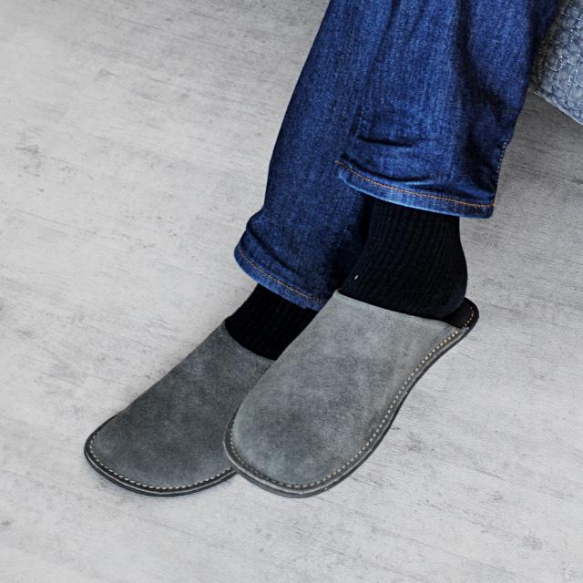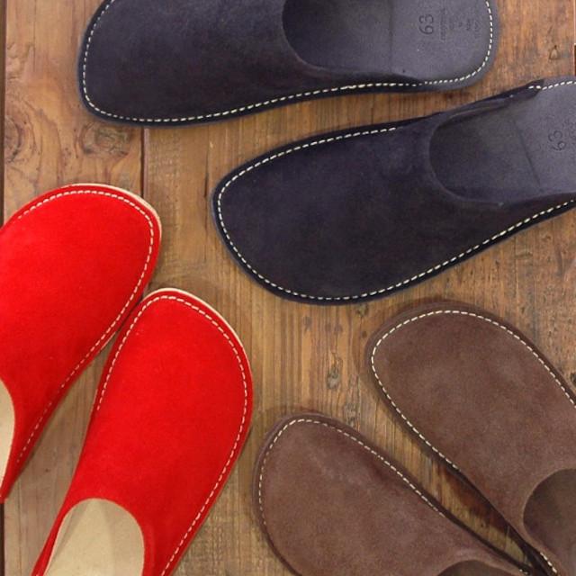 柔らかな牛革(ベロア)を使用し、年齢や性別を問わないレザースリッパ。