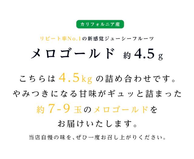 送料無料 カリフォルニア産 メロゴールド 7-9玉 約4.5kg ギフト 贈答 プレゼント 内祝い 【12月中旬頃より順次発送】