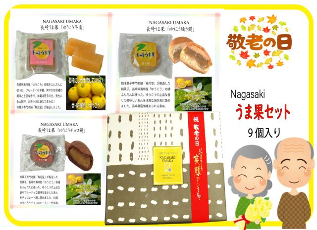長崎の和菓子 NAGASAKI UMAKA長崎うま果セット箱入 常温便 全9個/ゆうこう羊羹・ゆうこうチョコ饅・ゆうこう焼き饅各3個 バレンタイン ホワイトデー 父の日 母の日 誕生日 お祝い ギフト 包装を選んでください