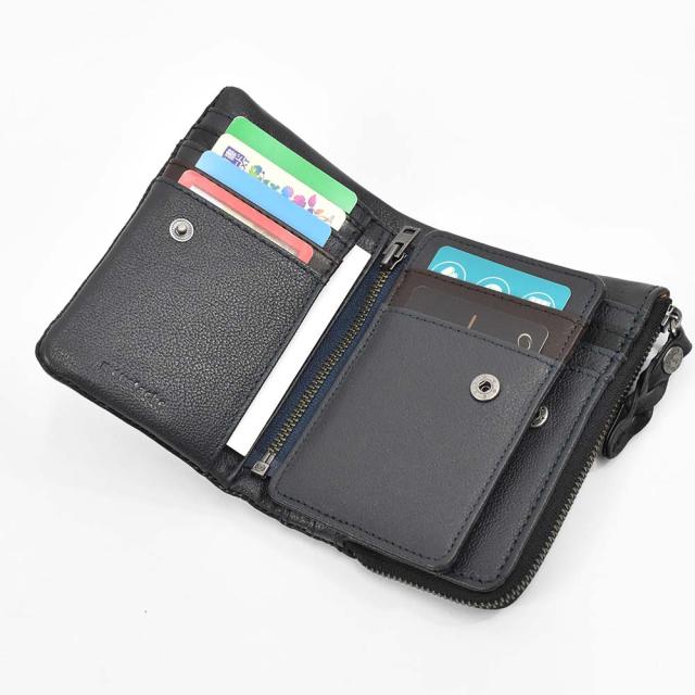 メイン収納部には中ベラが付いており、12枚のカードが収納でき、フリーポケットも3つ装備しています。また、背面にもポケットを配置しており、よく使うカードやICカードの収納にも最適です。