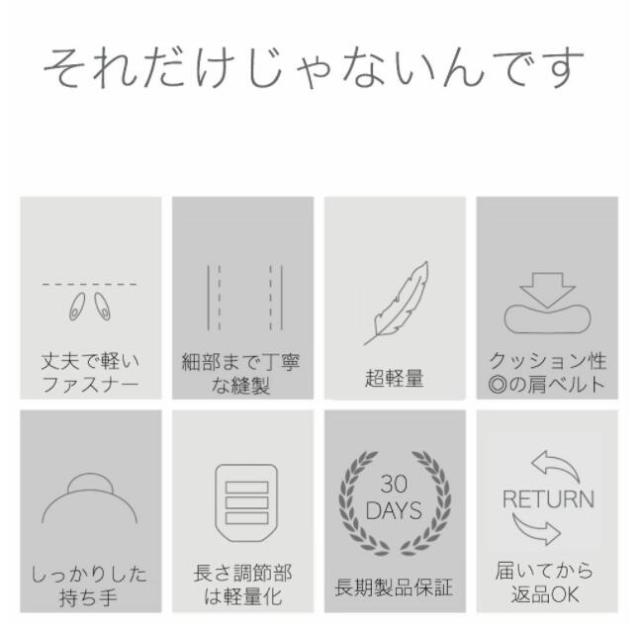 - 小さすぎず、大きすぎず 我が家はサイズ感と軽さが重要でしたので満足のいく商品が買えました。 全てチャックなので耐久性どうなんだろとは思いますがお値段もお手頃なので納得です。 商品の発送も早くてそこも良...
