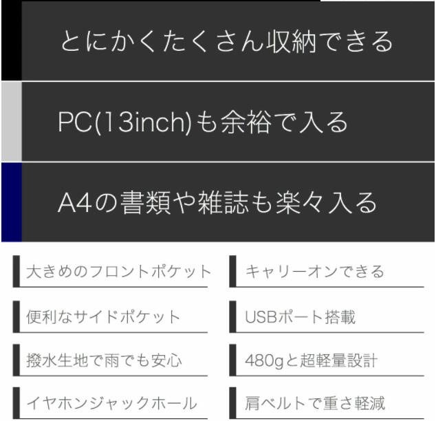 - 確かに今のリュックより薄くて軽いですね。容量は充分に入るので助かりました。