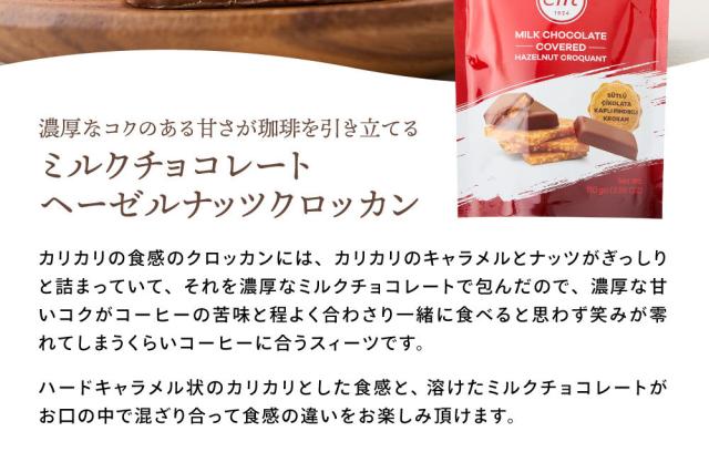 | このミルクチョコレート ヘーゼルナッツクロッカンは、カリカリのキャラメルとナッツを濃厚なミルクチョコレートで包んだスイーツです。コーヒーと一緒に食べることで、チョコレートの甘さとコーヒーの苦味が絶妙に混ざり合い、カフェタイムをさらに楽しくしてくれます。コーヒー愛好者や甘いもの好きな方にぴったりの一品です。 1. コーヒーと相性抜群のスイーツ このミルクチョコレート ヘーゼルナッツクロッカンは、コーヒーと一緒に食べると、その美味しさがさらに引き立ちます。カリカリのキャラメルとナッツの食感が楽しめるクロッカンを、濃厚なミルクチョコレートでコーティングすることで、甘さと苦味が絶妙にマッチ。コーヒーの苦味を引き立てつつ、甘い味わいが口の中に広がるため、一口食べるとやみつきになります。コーヒー好きな方への贈り物としても喜ばれること間違いなしです。 2. トルコ伝統のチョコレートブランド「エリート」からの逸品 1924年創業のトルコ最古のチョコレートブランド「エリート」が手掛けるこのスイーツは、長い歴史と伝統の中で培われた技術と知識によって作られています。エリートは品質向上への絶え間ない努力を続けており、その結果として生まれたのが、この濃厚で美味しいミルクチョコレートです。歴史あるブランドならではの深い味わいを、コーヒータイムに楽しんでみてはいかがでしょうか。 3. おうちで楽しむカフェタイムのお供にぴったり 「ENJOY COFFEE AT HOME」のメッセージ通り、このチョコレートは家で気軽に楽しめる最高のお供です。仕事の合間やリラックスタイムに、淹れたてのコーヒーと一緒に食べることで、カフェで過ごすような特別なひと時を体験できます。ハードキャラメルのカリカリ感と、溶けたミルクチョコレートの滑らかさが絶妙に混ざり合い、口の中で新しい食感のハーモニーを楽しめます。自宅で簡単に本格的なカフェタイムを楽しみたい方におすすめです。 | |
