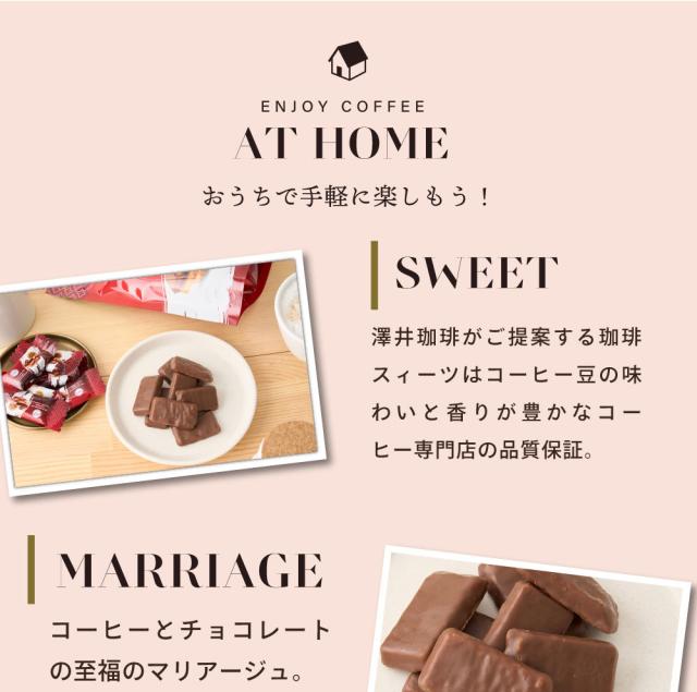 澤井珈琲(さわいこーひー)では、お客様のお家に商品が届き、箱を開けた瞬間。そして、トレードマークの赤いコーヒー袋の封を開けた時に鮮度抜群の「香り高さ」と、飲んだときの「味わい」に感動して頂けるように、レギュラーコーヒーはご注文を頂いてから焙煎をして焼きたてのコーヒー、コーヒー豆、珈琲、珈琲豆をお届けをしている焼き立て珈琲専門店です。お客様に「美味しい」と言って喜んで頂く事が私たちの喜びと思ってます。「美味しいコーヒーをお届けしたい」と想い続けて生まれたこだわりの味を、どうぞ、この機会にお楽しみくださいませ。澤井珈琲では、コーヒー豆は挽き方がご選択いただけます。珈琲豆を挽く事をお楽しみ頂ける『豆のまま』や、私共の専用の特注サイズの大型のミルで挽いて、コーヒー粉の状態にしてお届けする方法がございます。中挽き、細挽き、粗挽き、荒挽きなど様々な挽き方がございますが、私共がお薦めする『店長のおすすめ挽き』にて、そのコーヒーに合った一番美味しいと思える挽き方に挽いてお届けします。東京の銀座にも実店舗を構え、都内では浅草やスカイツリーのあるソラマチにも出店。「鳥取のコーヒー屋さん」とも呼ばれてますが、空気が綺麗で自然豊かな鳥取県に焙煎工場を構え、隣接する島根県の松江市や出雲市にも実店舗がございます。顔の見えないネット通販ですが、全国11店舗を展開する安心安全な澤井珈琲は、特徴的な「赤いコーヒー袋」に入れて、全国の珈琲好きにお選び頂いてます。よく間違えられる名前として、沢井珈琲、沢井コーヒー、澤井珈琲店、澤井珈琲本店、さわいこーひー、サワイコーヒーなどがございますが、正式名称は澤井珈琲となります。