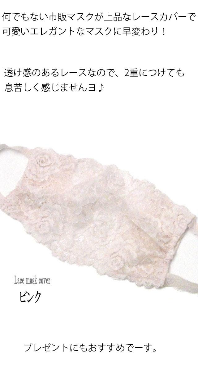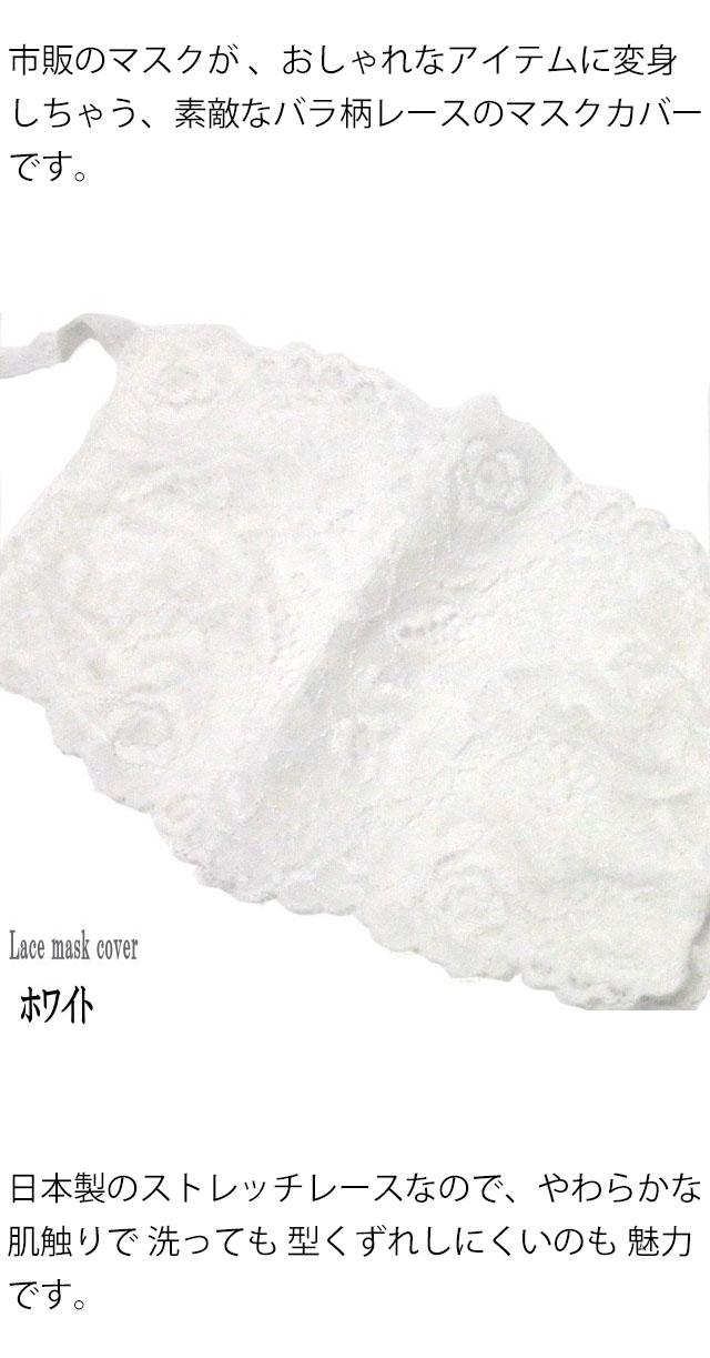 市販のマスクが おしゃれなアイテムに変身しちゃう、素敵なバラ柄レースのマスクカバーです。