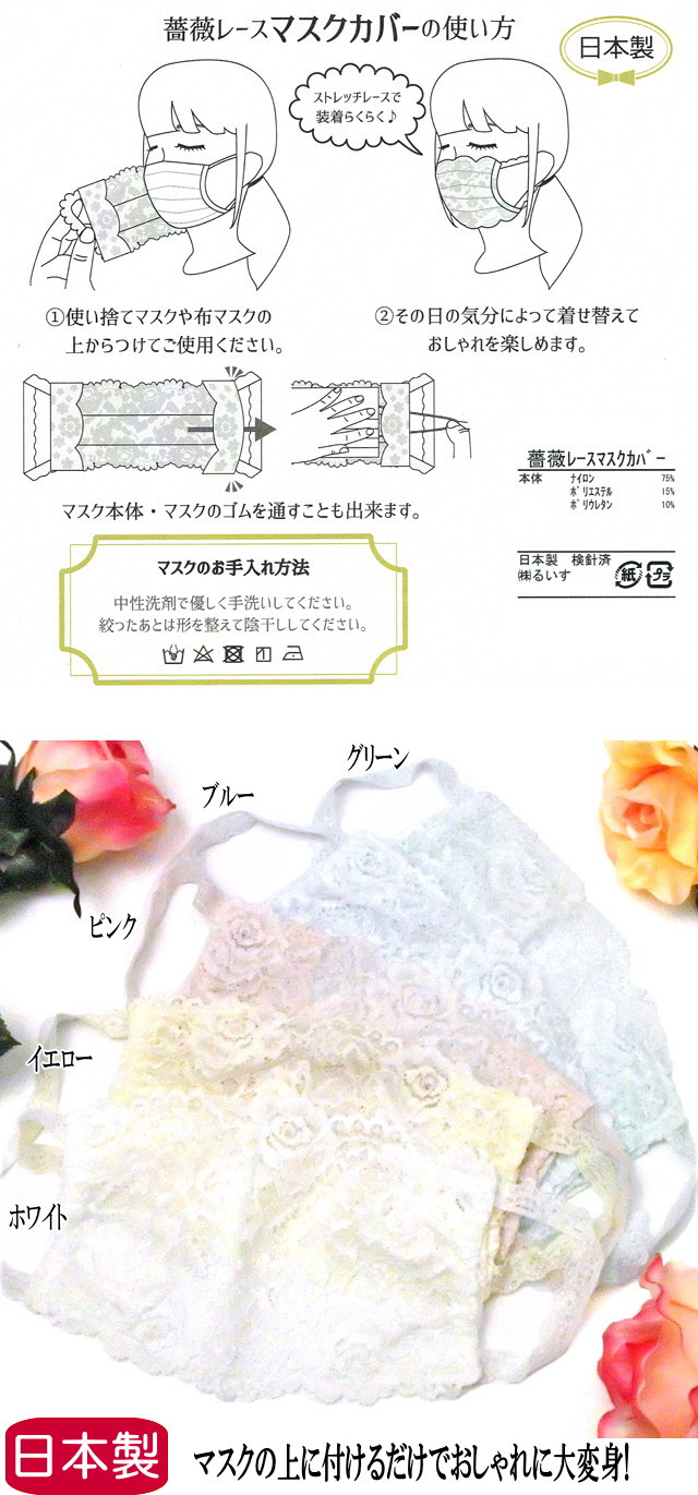 使い捨ての不織布マスクや布マスクの上からつけるだけ!ストレッチレースで装着ラクラク!