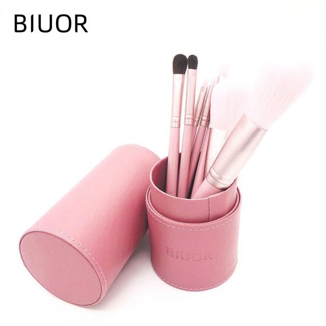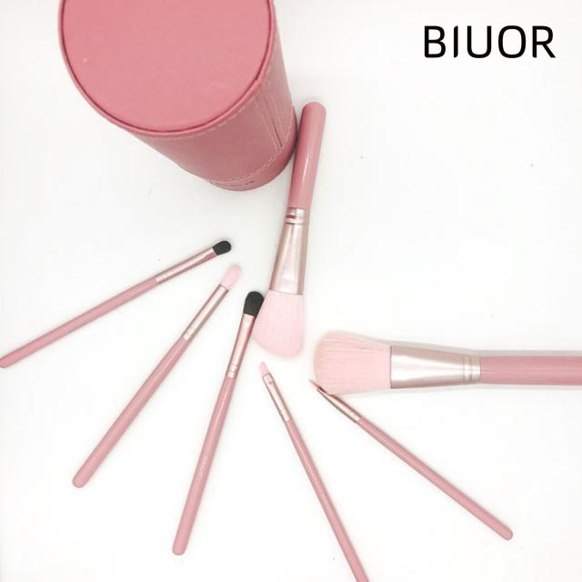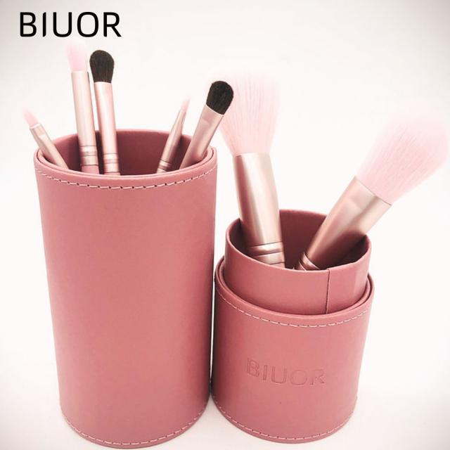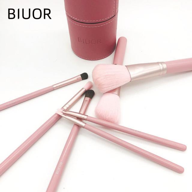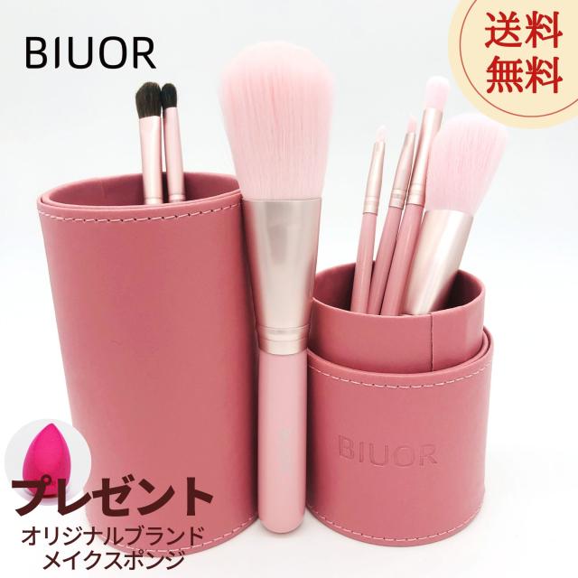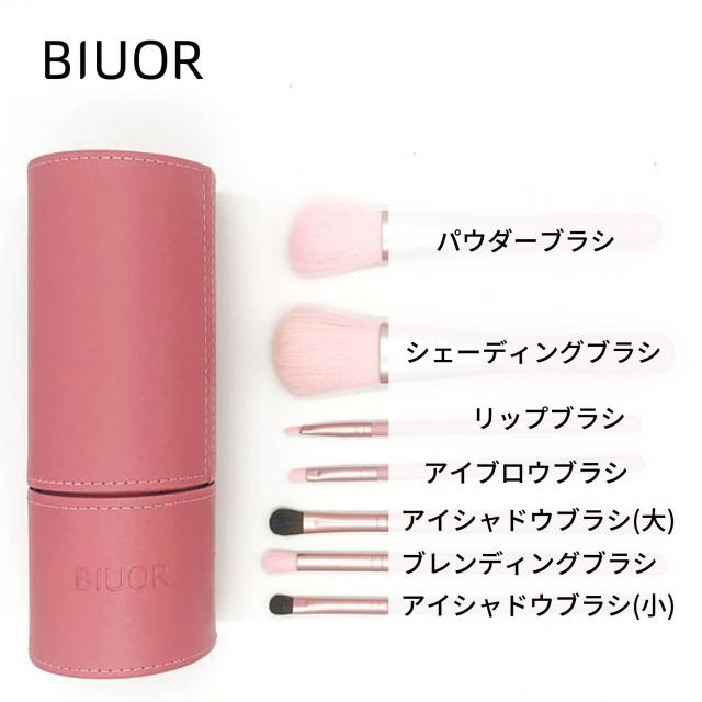 【送料無料】 BIUOR 7本ピンク色メイクブラシセット 円型メイクブラシ立て付 化粧ブラシ 高級タクロン 毛量たっぷり 超柔らかい ピンク プレゼント