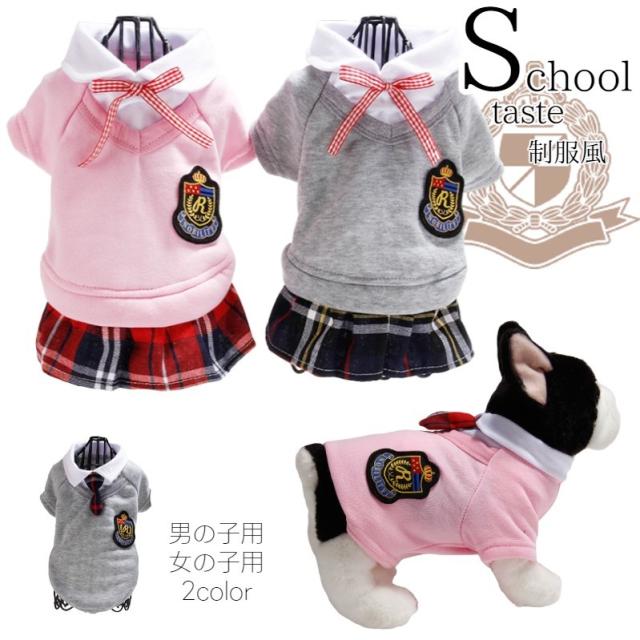 制服風のかわいいペット用ウェア。