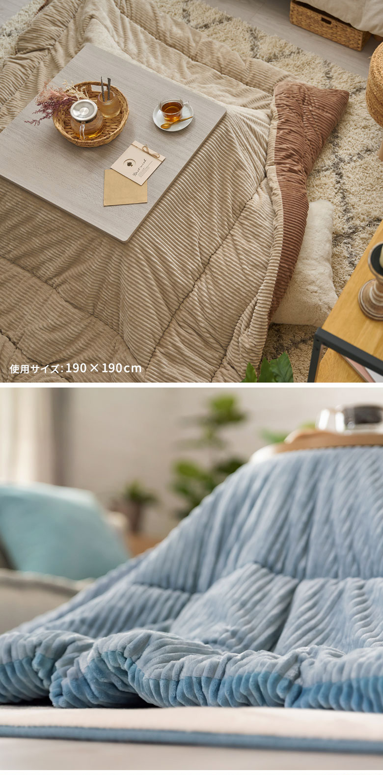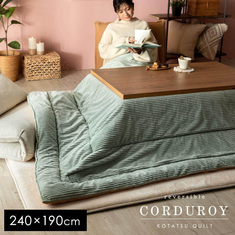 こたつ布団 長方形 240×190cm コーデュロイ 無地 リバーシブル キルティング ベージュ ブラウン ブルー グリーン グレー ネイビー こたつ掛け布団 洗える ポリエステル 北欧 おしゃれ シンプル カジュアル アジアン雑貨 かわいい アジアン 70107