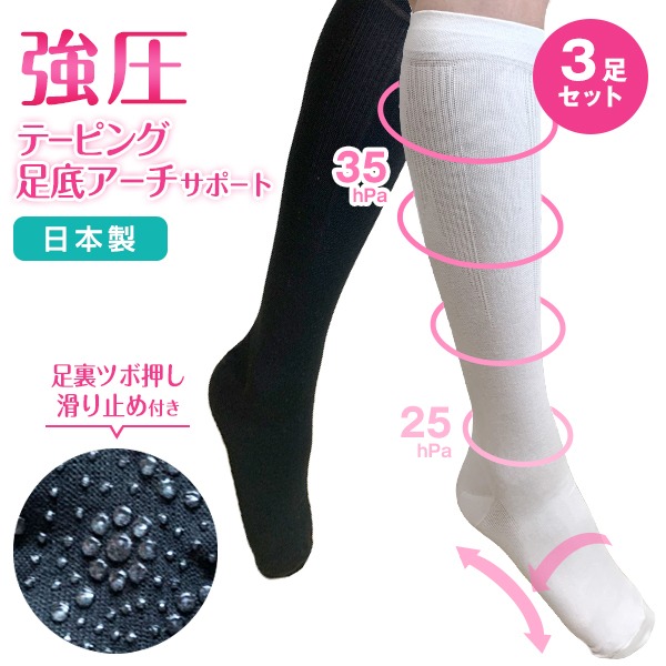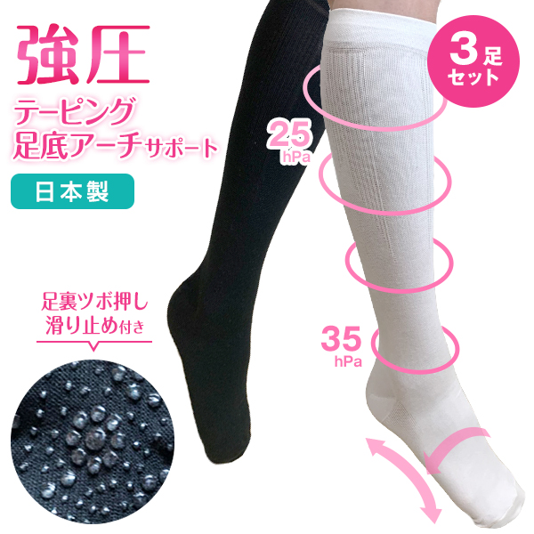 【究極】足裏ツボ押し 強圧 サポート 着圧ソックス ※3足セット※ 足底アーチサポート(滑り止め付き) 日本製 【ポスト投函送料無料】