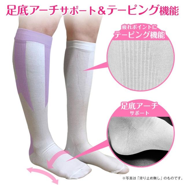 強圧サポート着圧ソックスは、足底の編みを変え、足のアーチをサポート。