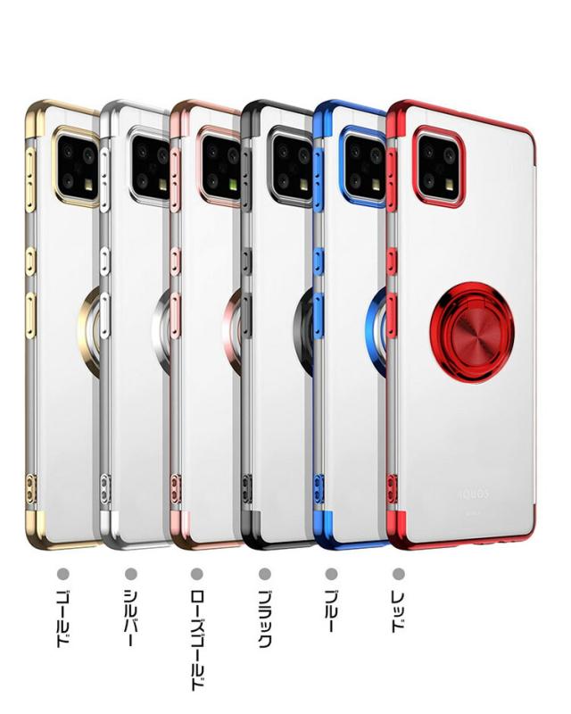 AQUOS sense 6s SHG07 SH-54B/sense 6 SHG05 クリアケース / クリアカバー メッキ TPU 一体型スマホリング付き ソフト カバー 透明ケース/カバー シャープ アクオス アクオスセンス6 ソフトケース おしゃれ アンドロイド スマフォ スマホ スマートフォンケース/カバー