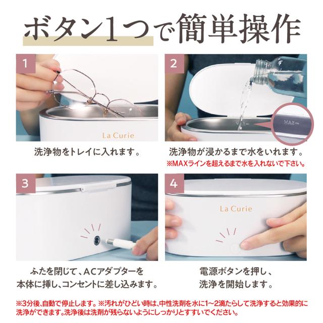 タイマーが内蔵されていて、3分後に自動的に洗浄が停止します。日常で使うメガネや大切にしたいアクセサリーなどを手間も時間もかけずにきれいに洗浄できます。