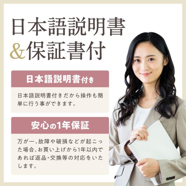 安心の1年保証、日本語説明書付きで、日本語説明書付きだから操作も簡単に行う事ができます。