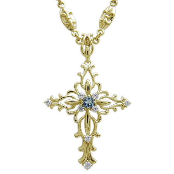 メンズ・ネックレス・クロス・百合の紋章・人気・アクアマリンサンタマリア・10金