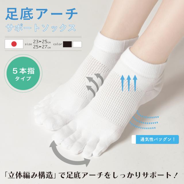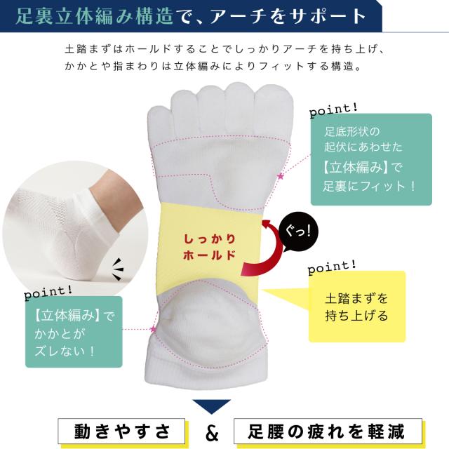 【究極シリーズ】5本指 靴下 スポーツソックス 足底 アーチサポート 日本製 くるぶし丈 靴下 【ポスト投函送料無料】クルー ソックス 足裏 サポート 綿混合