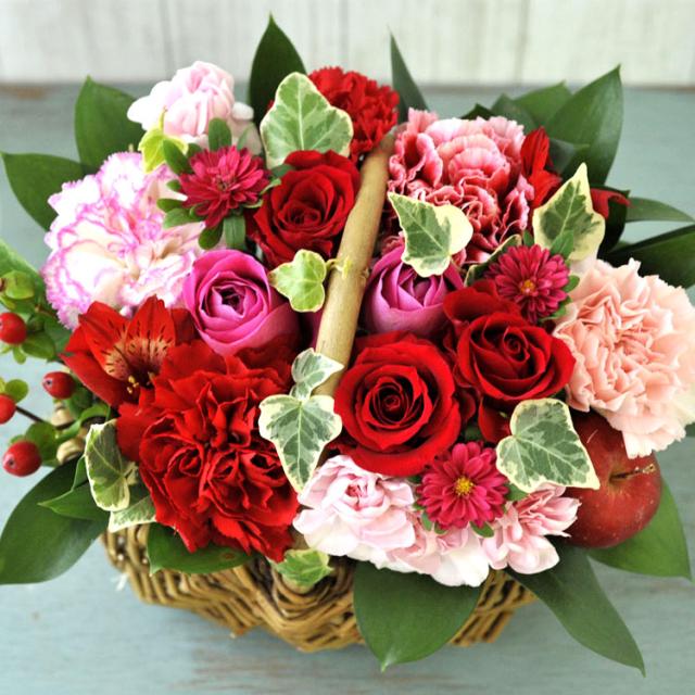 ミニョンバスケット 誕生日 プレゼント 女性 彼女 妻 友達 花 ギフト バレンタイン ホワイトデー 記念日 結婚祝い 出産祝い 誕生花 送料無料 最短翌日 明日着 メッセージカード FKAA