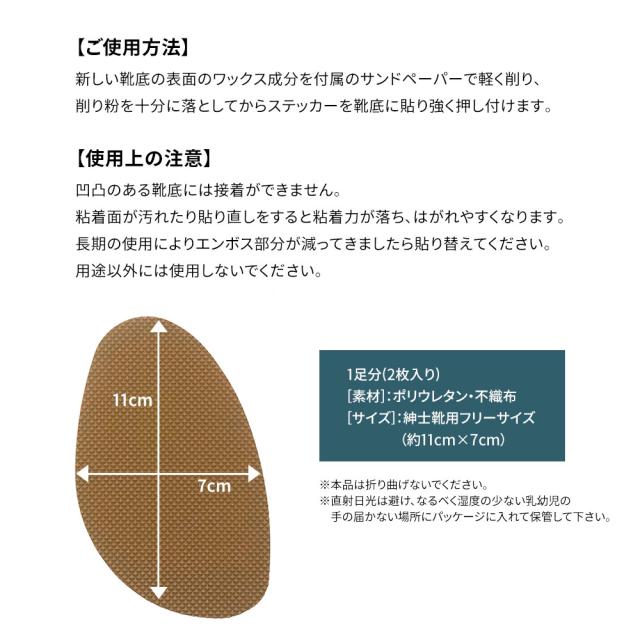 本革底紳士靴の滑り止め ノンスリップステッカー 紳士靴用 革底用 フラット底用 靴の滑り止め ステッカー メンズ 紳士靴用 ビジネスシューズ用 革靴 靴底のすり減りを防ぐ 滑り予防 防滑 スベリ止めステッカー 黒 ベージュ フリーサイズ
