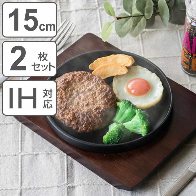 ステーキ皿 15cm スタッキング 木製プレート付き 鋳鉄 IH対応 2枚セット ( オーブン対応 ガス火対応 鉄板プレート 木皿付き 鉄製プレート 鉄板 鉄製 ステーキプレート 鉄板皿 鉄皿 鉄鋳物 丸型 ガス火 IH ガス 両対応 対応 OK )