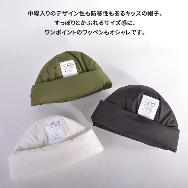 中綿入りのデザイン性も防寒性もあるキッズの帽子。