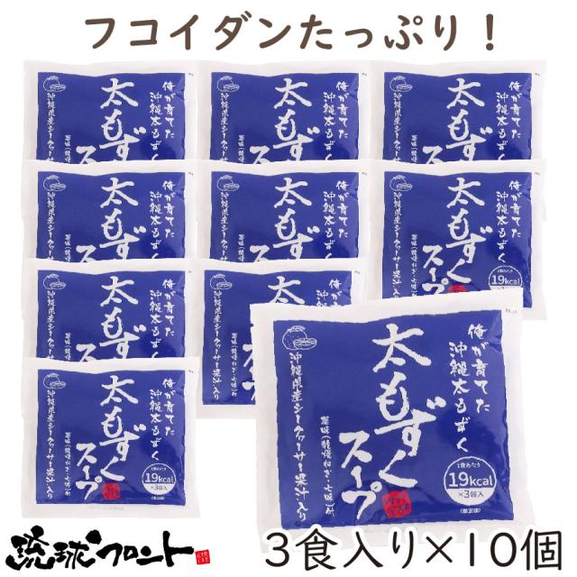 太もずくスープ(3食入) シークワーサー果汁入×10個セット 沖縄 もずく 即席スープ