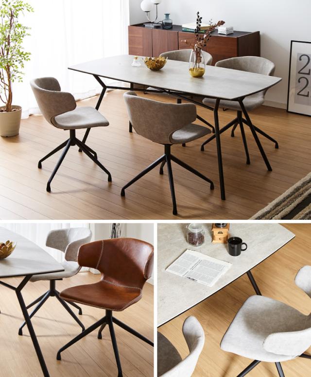 座面と背もたれを一周する手縫いのようなステッチがオシャレなラウンド式のチェア。