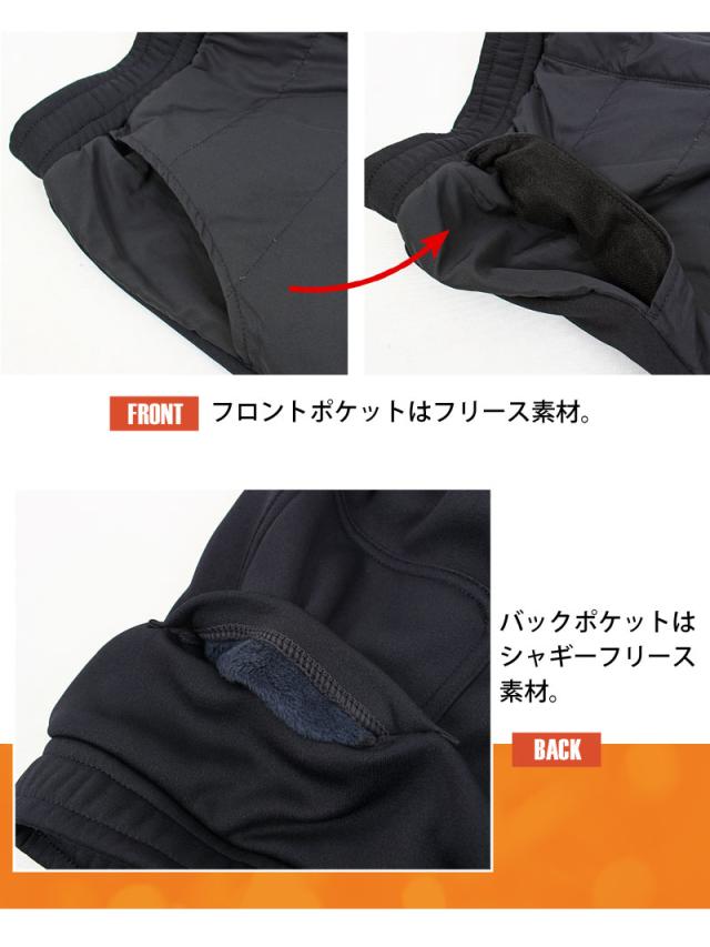 | 特徴 | 表面にダウン&フェザー、裏地にシャギーフリースを 施した真冬の寒さにも対応した頼れるアイテム ダウン80%&フェザー20%の贅沢な混率に 裏地のシャギーフリースで保温性を高めた 暖かさバツグンの仕上がり。 レギュラーシルエットを採用しているので、 脚に少し余裕ができ無理なく着用する事ができます。 表面のナイロン&キルト仕立てが デザイン性も高めてくれています。 ウエストはゴムひもで伸縮性があります。 フロントポケット裏はトリコット仕様。 後身頃はストレッチの効いたスウェット素材で 動き易さやフィット感も納得。 |