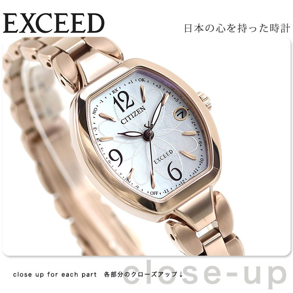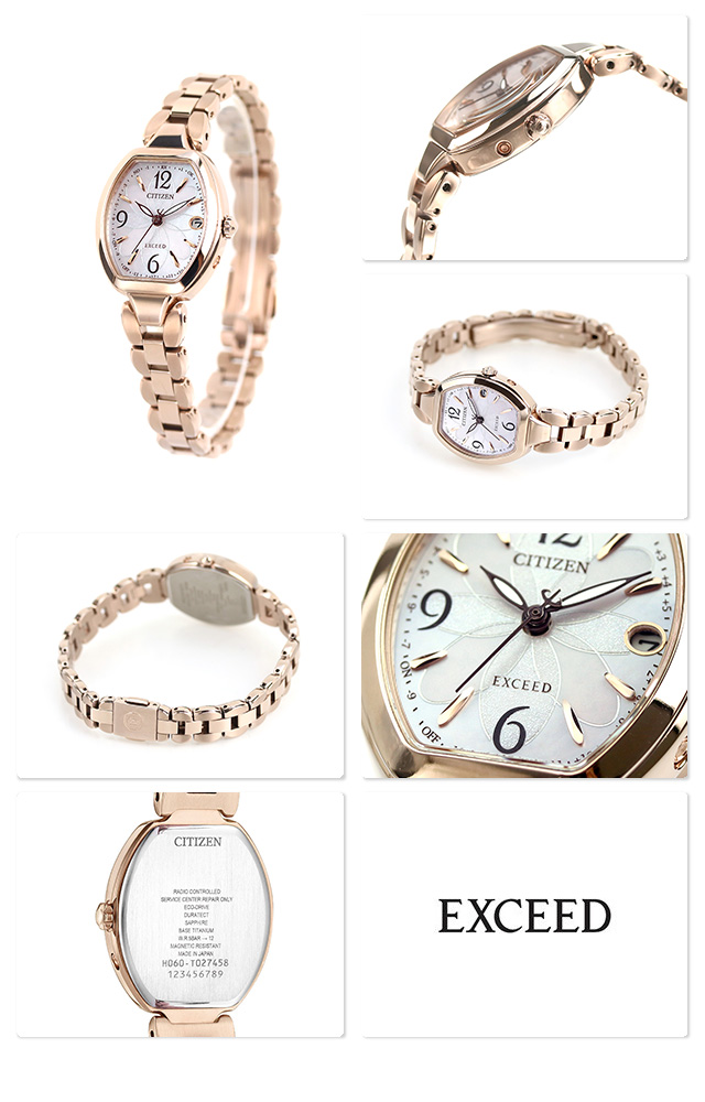 正規品 7年保証キャンペーン 送料無料 シチズン エクシード エコ・ドライブ電波時計 ティタニアハッピーフライト チタン 電波ソーラー 日本製 エコ・ドライブ電波 レディース 腕時計 ES9482-51W CITIZEN EXCEED Eco-Drive Titania Happy Flight アナログ ホワイトシェル×サクラピンク ◆優雅なデザインが人気のフラワーバンド、トノー型モデルがハッピーフライト機能を搭載して登場。ケースからバンドへつながる、花びらのような軽やかで優しいラインも魅力的なデザインに、簡単な操作で世界24都市の時刻に修正できる「ハッピーフライト」を搭載しています。また、美しい白蝶貝の文字盤を採用。エッチングパターンを施し、ひときわエレガントに仕上げています。女性の肌を明るく美しくみせる色、サクラピンク*もポイント。スーツスタイルから、休日の大人カジュアルまで幅広く合わせることができます。 *サクラピンク、Sakura pinkは、シチズン時計株式会社の商標です。 発売日:21年11月発売