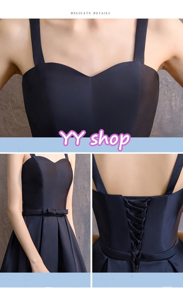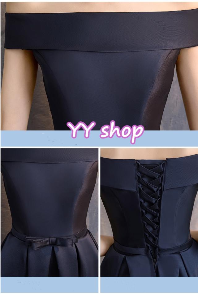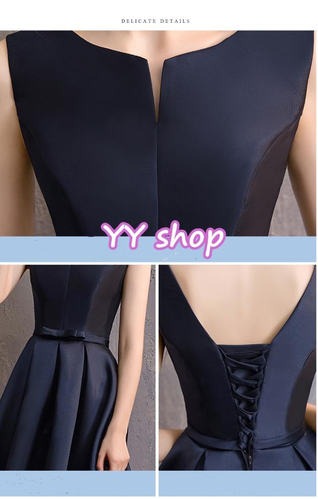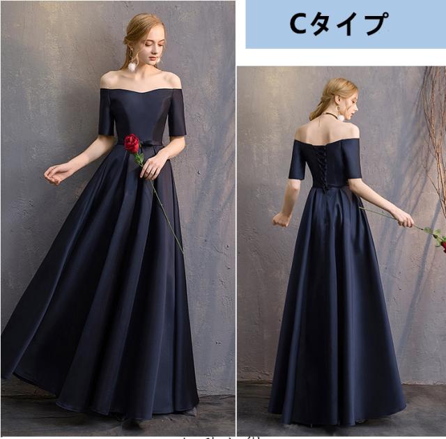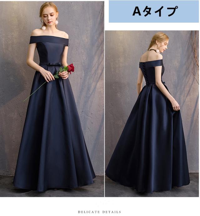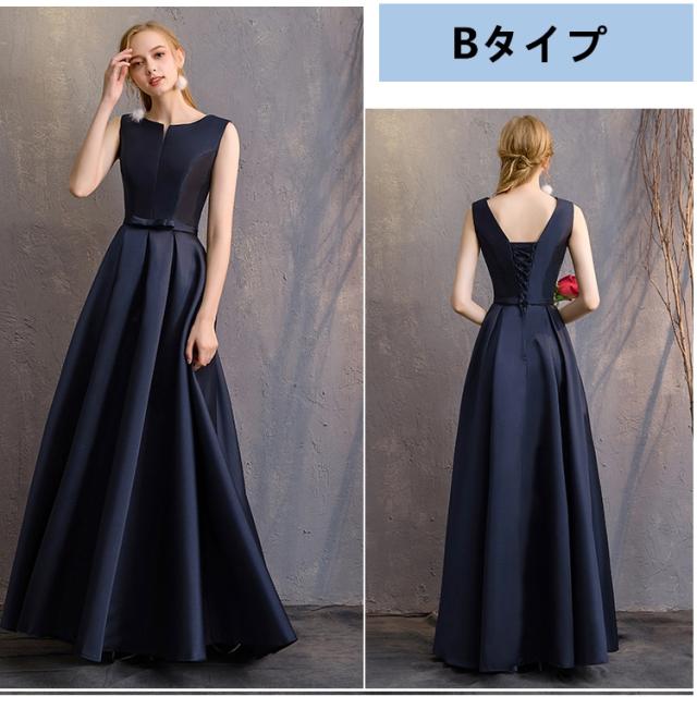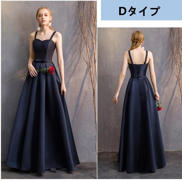 エレガント サテン パーティドレス ワンピ ロングドレス ブライズメイド ネイビー 結婚式 二次会 発表会 イベント 卒業式 XS~3XL D029