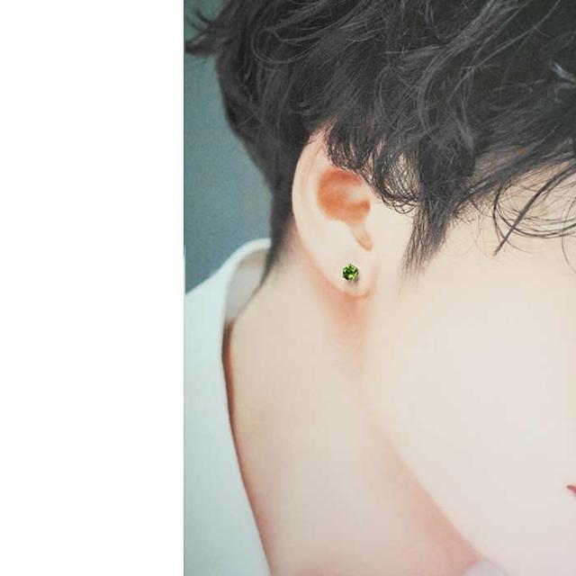 プラチナ メンズピアス 片耳 ペリドット 大粒 5mm 天然石 誕生石 日本製 【品質保証書つき】 シンプル セカンドピアス 1個ずつバラ売り