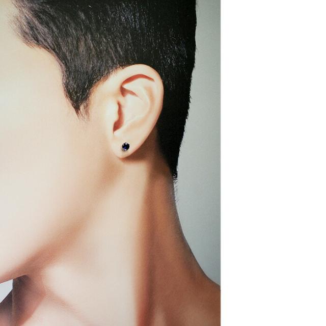 アイオライト 大粒 5mm プラチナ メンズピアス 片耳 軸太 ロングポスト 天然石 誕生石 日本製 【品質保証書つき】 シンプル セカンドピアス 1個ずつバラ売り