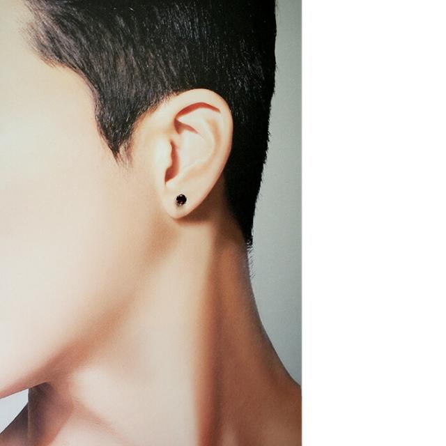ガーネット 大粒 5mm プラチナ メンズピアス 片耳 軸太 ロングポスト 天然石 誕生石 日本製 【品質保証書つき】 シンプル セカンドピアス 1個ずつバラ売り
