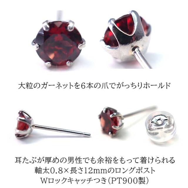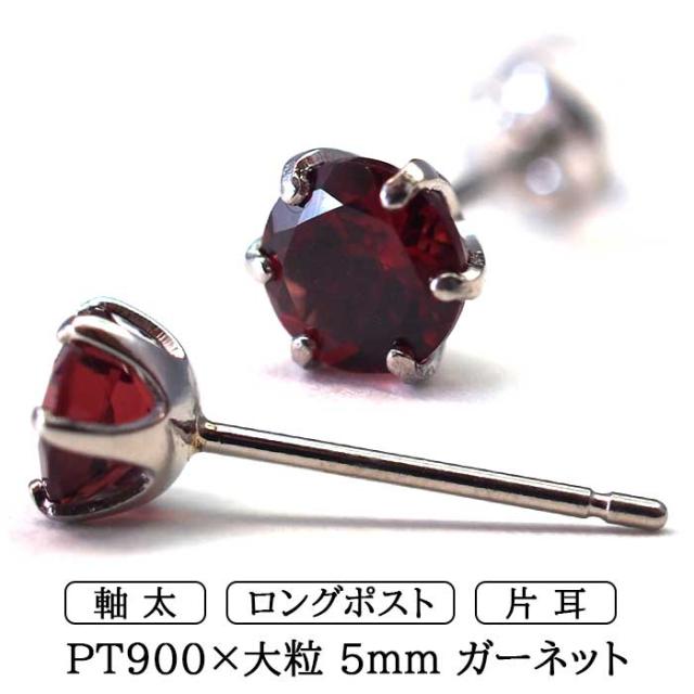 | セカンドピアス つけっぱなし プラチナ PT900 ガーネット 5mm 大粒 ピアス 金属アレルギー対応 軸太 ロングポスト 特針タイプ |