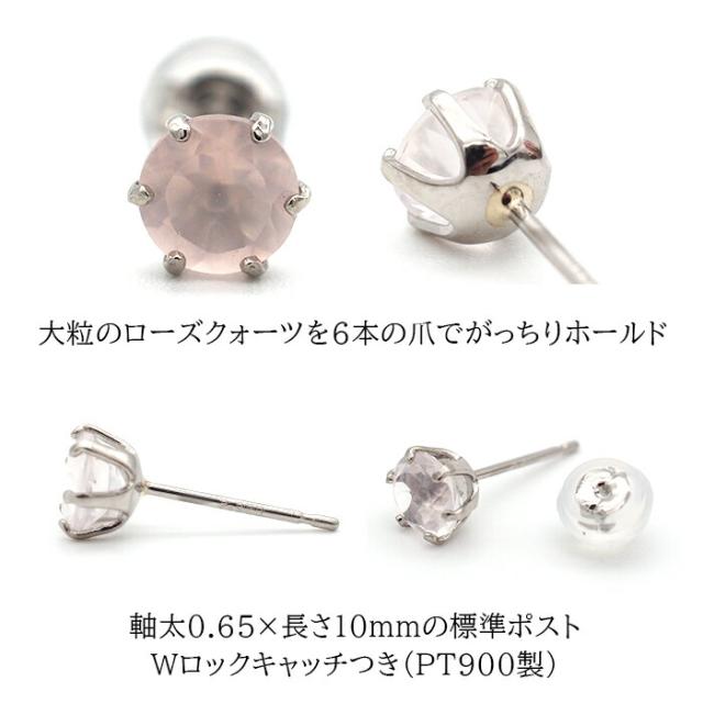 | セカンドピアス つけっぱなし プラチナ PT900 ローズクォーツ 5mm 大粒 ピアス 金属アレルギー対応 |