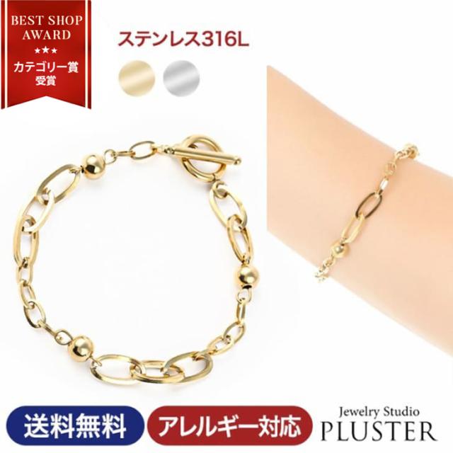 ブレスレット レディース チェーン 金属アレルギー対応 ステンレス316L サージカルステンレス 医療用 重ね付け つけっぱなし 太め イエロー ゴールド ジュエリー アクセサリー アレルギー対応 シンプル 誕生日 クリスマス プレゼント 女性 ギフト