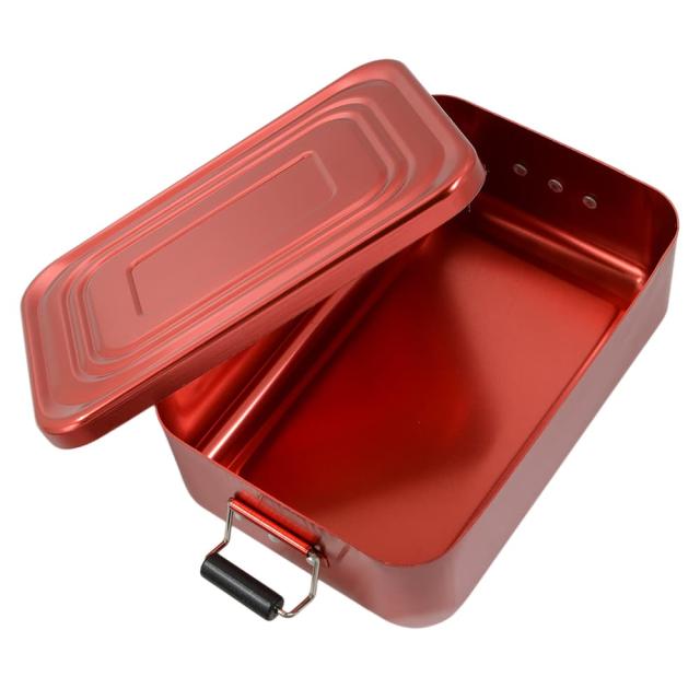 軽量で丈夫なアルミニウム製の角型ランチボックスです。