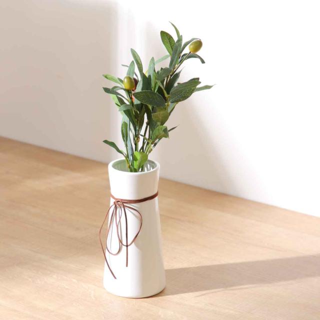 すらっとしたシルエットが省スペースにも飾りやすい、陶器の鉢入りです。さりげなくリボンがあしらわれており、華やかな雰囲気を引き立てるワンランク上のデザインです。