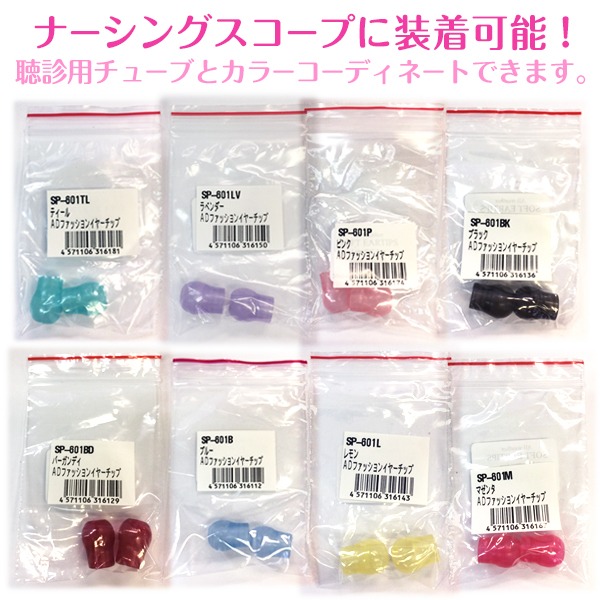 AD ファッション イヤーチップ(全8色) ソフト イヤーチップ 聴診器用 間違い防止 ADスコープ 聴診器 小物【ポスト投函送料無料】