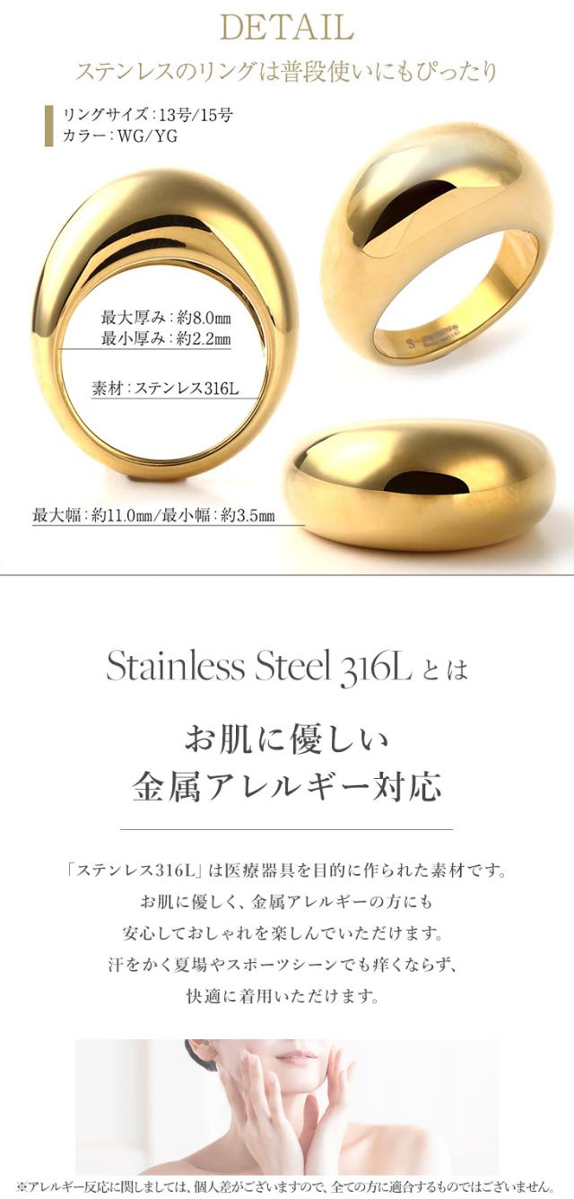 半額 指輪 リング ステンレス レディース 太め 金属アレルギー サージカルステンレス 316L メンズ ユニセックス 男女兼用 ペア レイヤード 重ねづけ シンプル ゴールド シルバー ホワイト 13号 15号 誕生日 クリスマス プレゼント 女性 アクセサリー