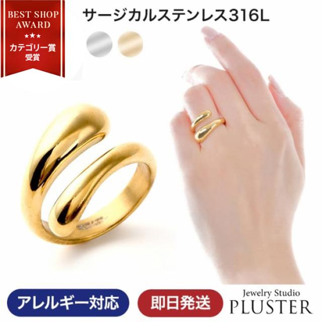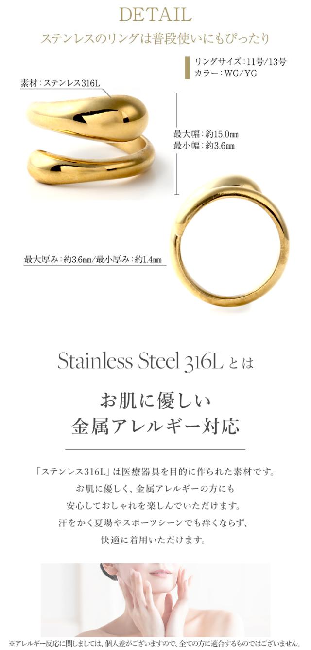 指輪 リング レディース ドロップ 丸み サージカルステンレス ステンレス 金属アレルギー 316L メンズ ユニセックス 男女兼用 ペア レイヤード 重ねづけ シンプル ゴールド シルバー ホワイト 11号 13号 誕生日 クリスマス プレゼント 女性 ギフト アクセサリー