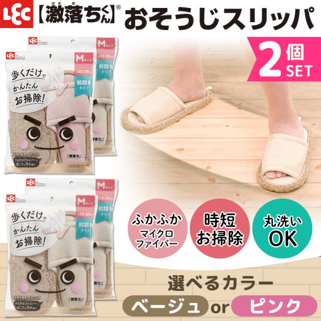 スリッパ お掃除スリッパ 同色2足セット Mサイズ 22〜25cm ながら掃除 ベージュ ピンク レック